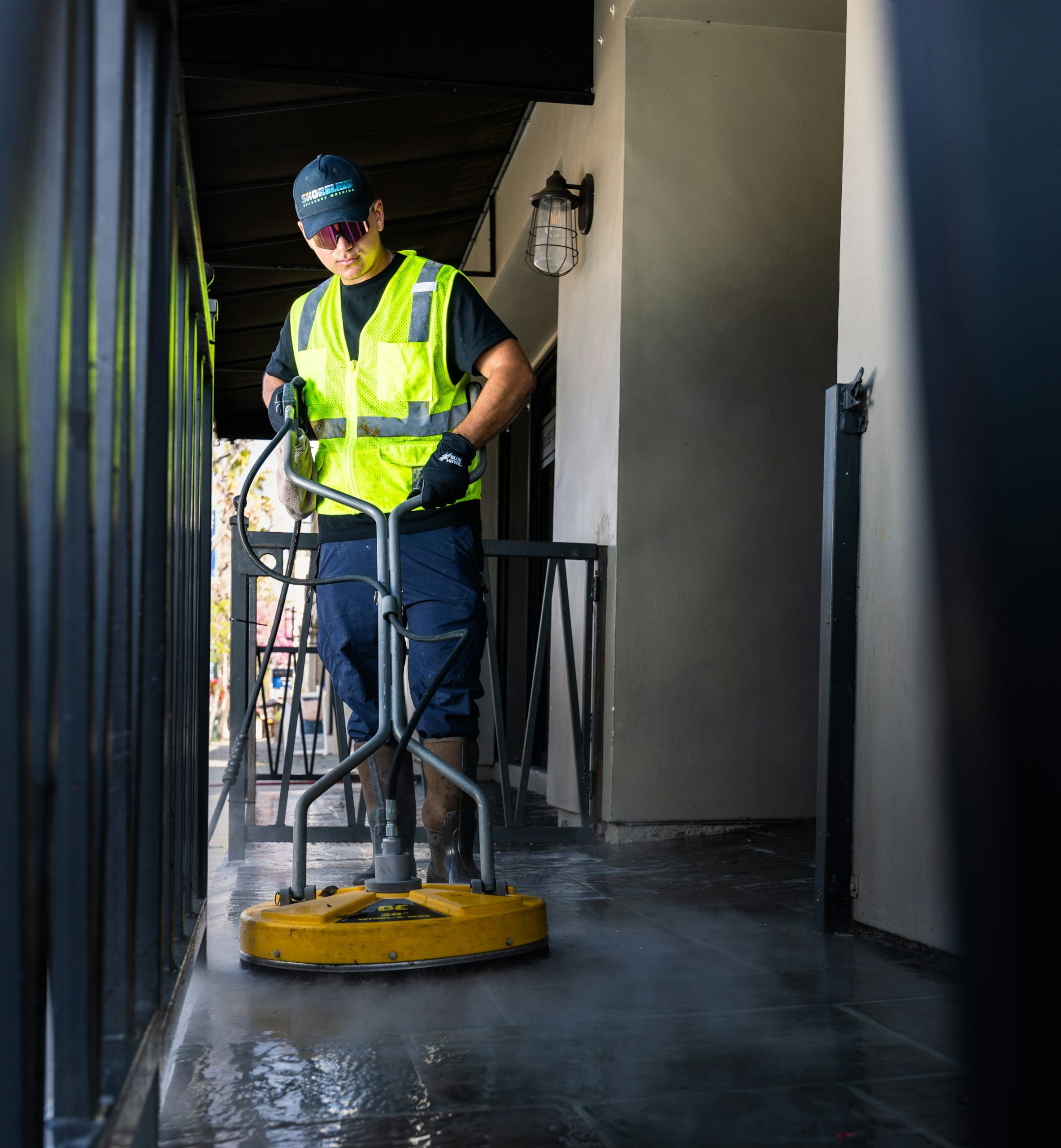 Snažno mašinsko čišćenje koje uklanja prašinu, ulje, tragove guma i teške naslage. Idealno za podzemne garaže, velike hale i prostor koji zahteva "heavy-duty" pristup.